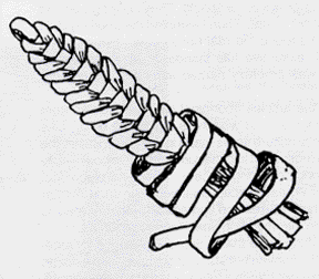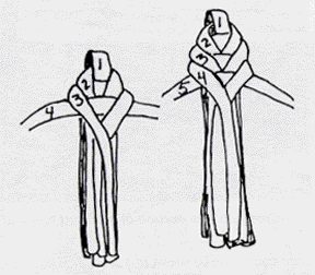 5. Continue with #4, as with #3, folding #3 over #4, then #4 over #5, #5 over #6, #6 over #7 until all the short tules are used.