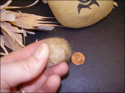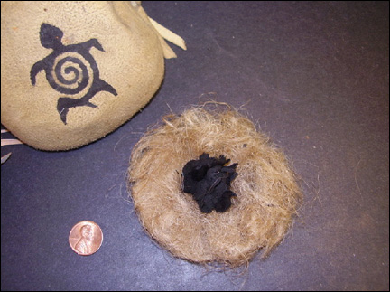 4. Jute twine pulled apart and made into a small tinder nest (penny used to show size relationship).