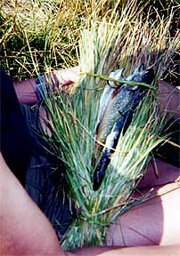 bundle in creek water to moisten the fish. Field dress your fish