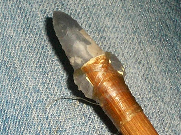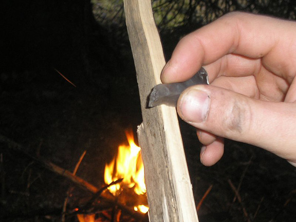 Both scraping and planing is essentially the same type of task so I'll treat them together. It involves using a flake to remove material by pushing or pulling on a surface of wood, usually in the direction of the grain. The amounts of materials that can be removed this way in each stroke are not great, but since it's easily repeated it is faster than it may initially seem to be, especially on narrow ridges. An arrow to be reduced in size, being round it is essentially all ridge. Which lends this method extremely effective.